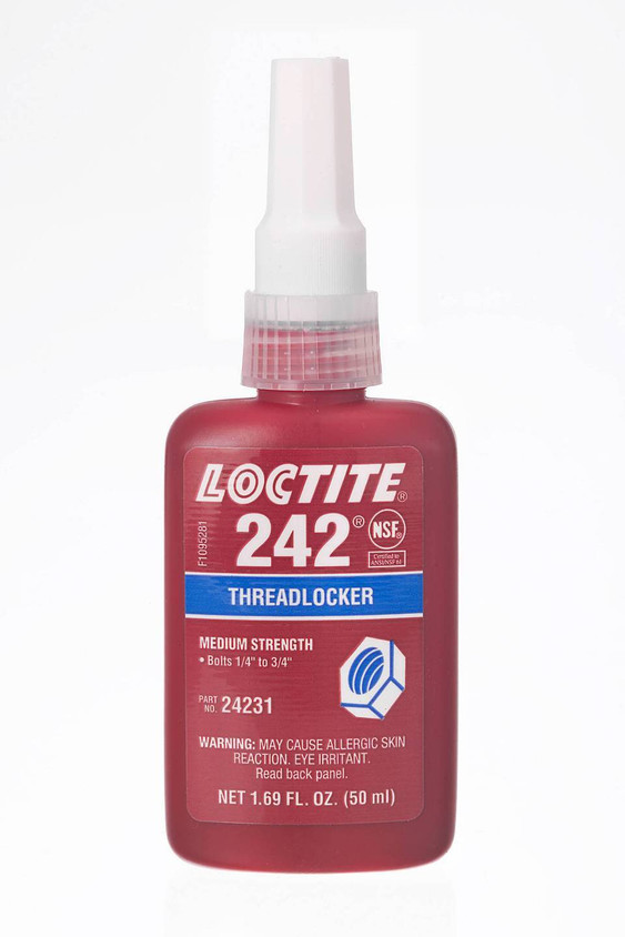 LOCTITE® 243 is a one-component, anaerobic, medium strength, medium viscosity threadlocker.This blue adhesive (when uncured) is designed for the locking and sealing of threaded fasteners which require normal disassembly with standard hand tools. The product cures when confined in the absence of air between close fitting metal surfaces and prevents loosening and leakage from shock and vibration.The thixotropic nature of LOCTITE® 243™ reduces the migration of liquid product after application to the substrate. LOCTITE® 243™ provides robust curing performance. It not only works on active metals (e.g. brass, copper) but also on passive substrates such as stainless steel and plated surfaces. The product offers high temperature performance and oil tolerance. It tolerates minor surface contaminations from various oils, such as cutting, lubrication, anti-corrosion and protection fluids. LOCTITE® 243™ is particularly suited for locking threaded fasteners of various equipment such as pumps, gearboxes, motors and vehicles.