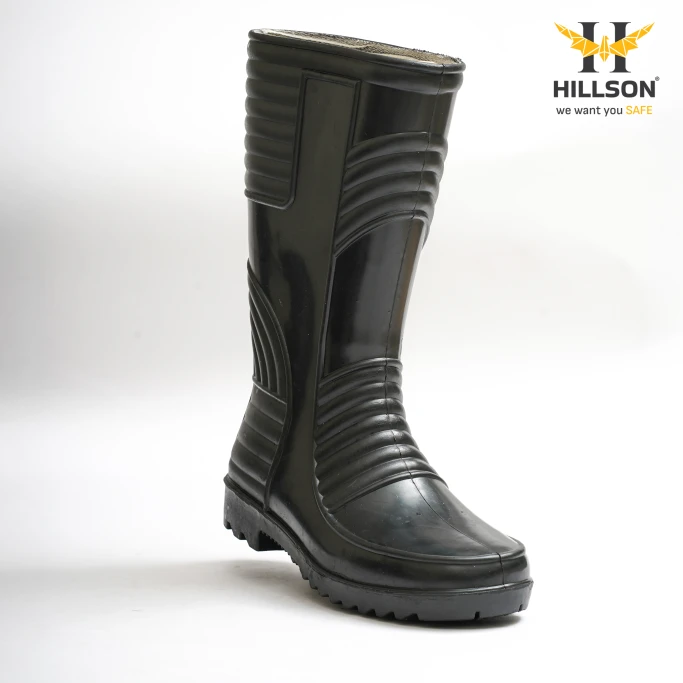 Hillson Welsafe is a Dual Density PVC gumboot, belonging to the Rainwear category which protects the feet from Water, Mud, Chemicals, Acid, etc its lining is made up of 100% Polyester, the upper is made up of soft PVC for flexible & Comfortable walk.