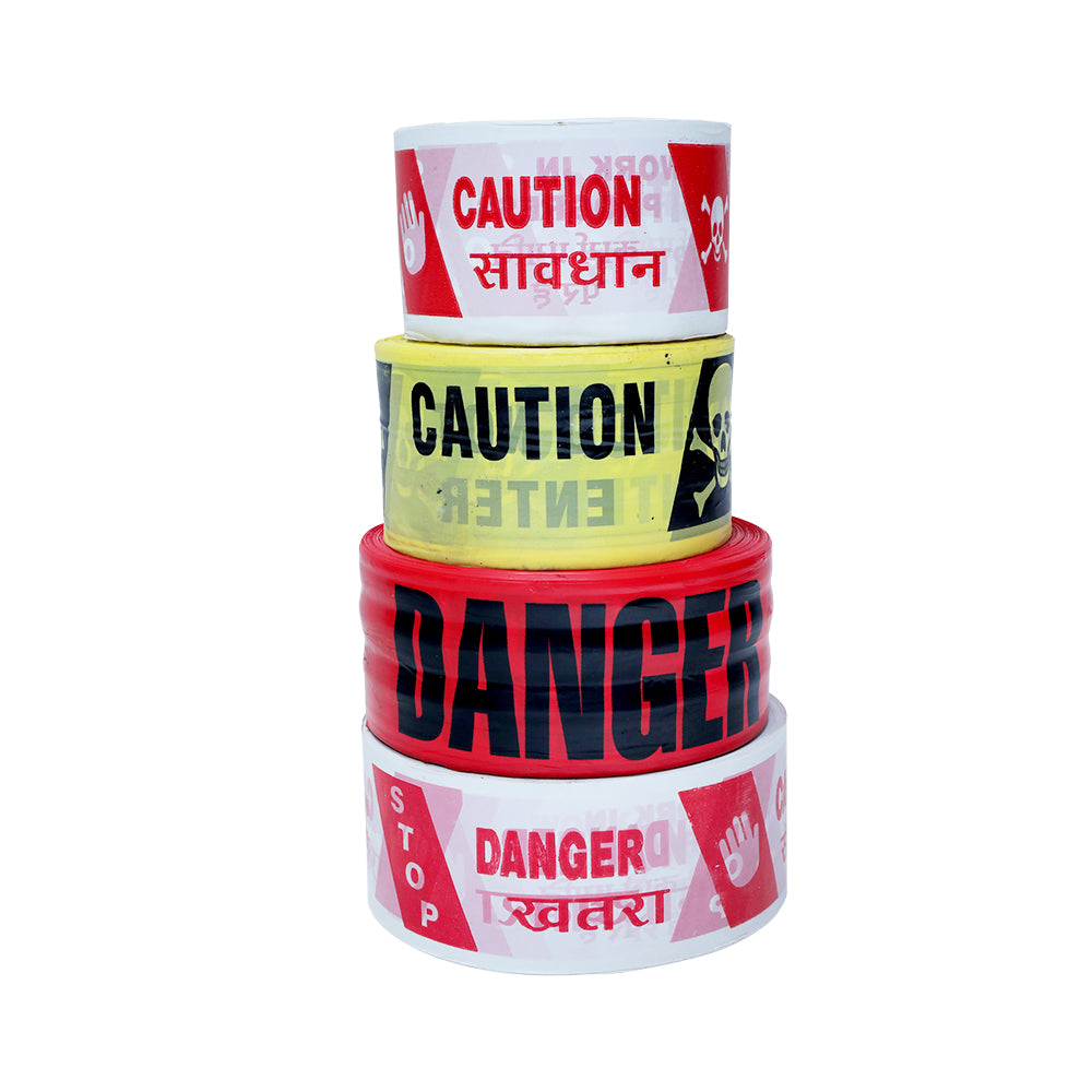Barricade tape, also known as warning or caution tape, is a brightly colored, non-adhesive plastic strip used to visually demarcate and warn people away from hazardous areas, construction sites, crime scenes, or other restricted zones. Its primary purpose is to enhance safety by preventing accidental entry into dangerous locations, with different colors indicating various types of hazards, such as yellow for general caution or red for high danger.