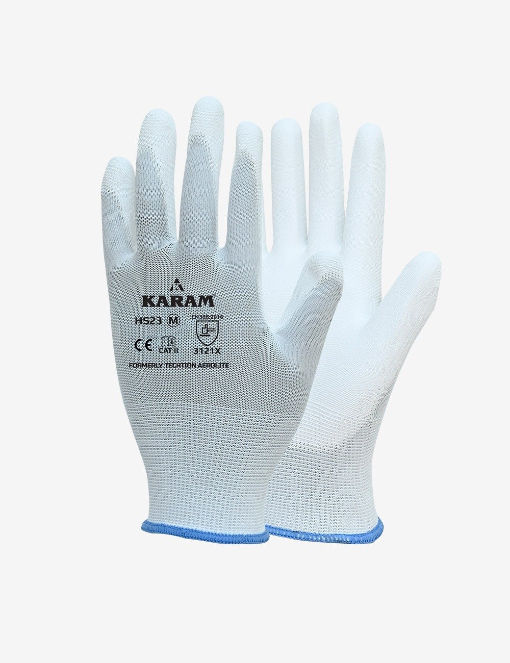 Polyester Liner with Polyurethane Coating White Safety Gloves, HS23
