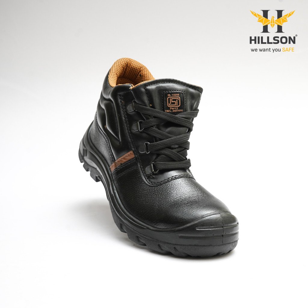 Hillson Apache is a stylish safety shoe with great aesthetics, and the upper of this shoe is made up of genuine grain leather with Apollo print. It is an ISI safety shoe & the sole of the shoe is made up of fully molded Polyurethane which provides good Anti-slip, Anti-Abrasion, Oxidation & bending properties. D Type anti-rust eyelets are used & are suitable for the Engineering, Petrochemical & Construction Industries.