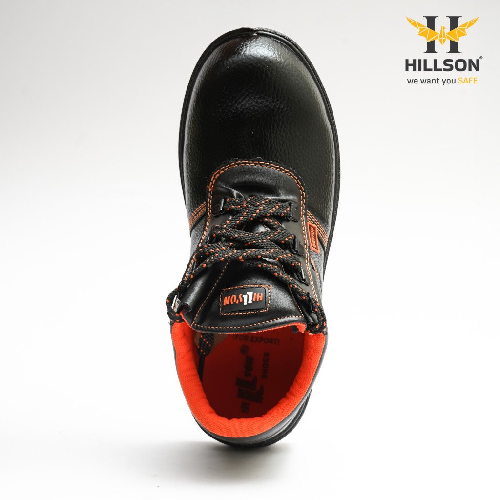 Hillson Beston has a Synthetic leather water-resistant upper which can handle both dry and wet conditions. The eyelets used in this shoe are D- Type rust-free eyelets. The sole of this shoe is made up of single density injected PVC which makes it suitable for Engineering, Construction & Manufacturing Industries.