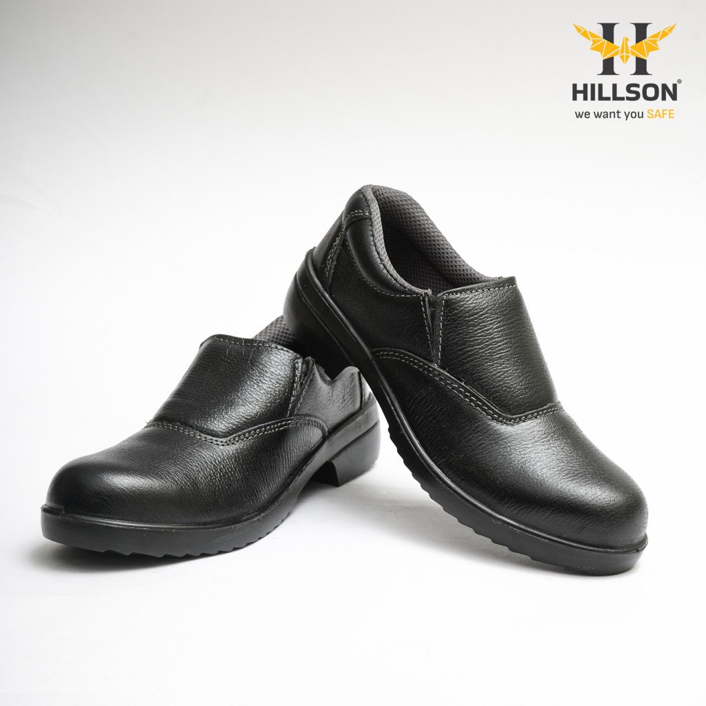 Hillson LF-02 is a formal ladies safety footwear equipped with steel toe for foot protection. It is ISI-marked ladies safety shoes that meets all the required quality standards. It is suitable for wearing at any office or place where protection from falling objects is required. The sole is made up of PU while the upper is made up of Genuine grain leather in C.G print.
