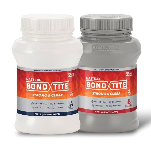 BONDTITE SUPER STRENGTH is a high-strength, two component epoxy adhesive system which sets in 8 hours. Suitable for fixing marble and granites in kitchen, bathroom and window frames, staircase moulding, wood-working and for wood to wood, marble, glass bonding, metal to metal bonding in automotive, fabrication work, wall cladding of engineered/sintered marble, etc.
